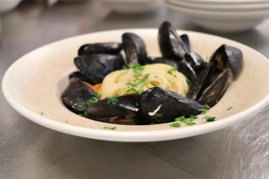 Seafood linguini is a pasta dish with linguini, fresh seafood, and a garlic-white wine sauce.